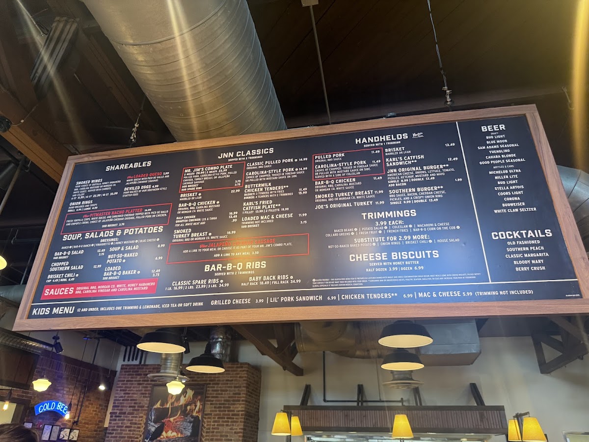 The menu boasts a variety of delectable dishes, with the baby back ribs stealing the spotlight—fall-off-the-bone tender and bursting with smoky goodness. Complementing these meaty delights are perfectly seasoned sides, including the fan-favorite cheese biscuits that keep customers coming back for more.